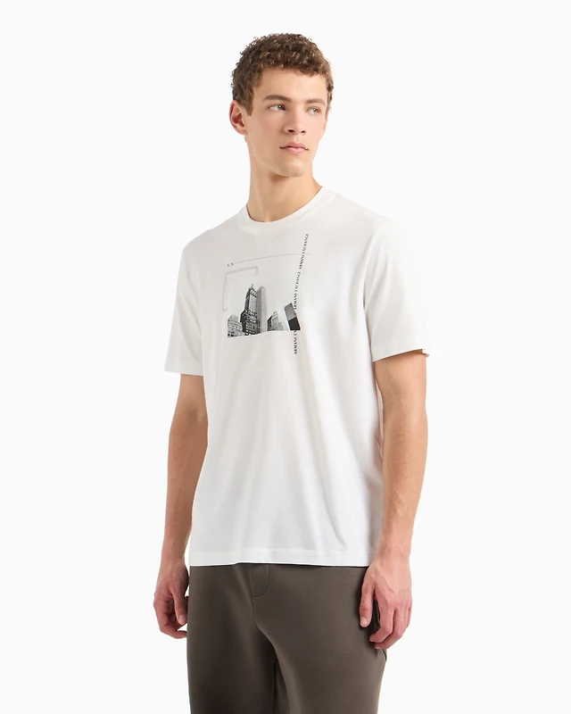 A|X Armani Exchange Men's Short Sleeve Crewneck Building Graphic T-Shirt