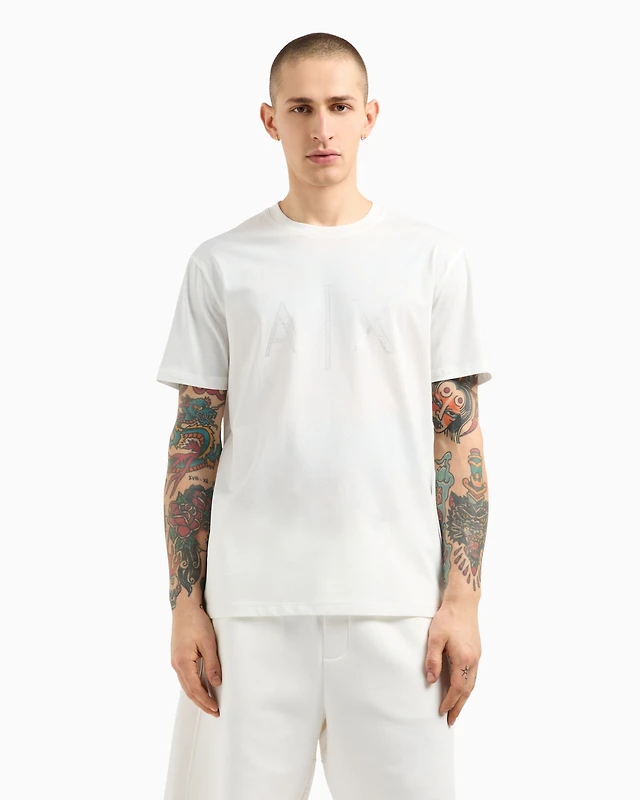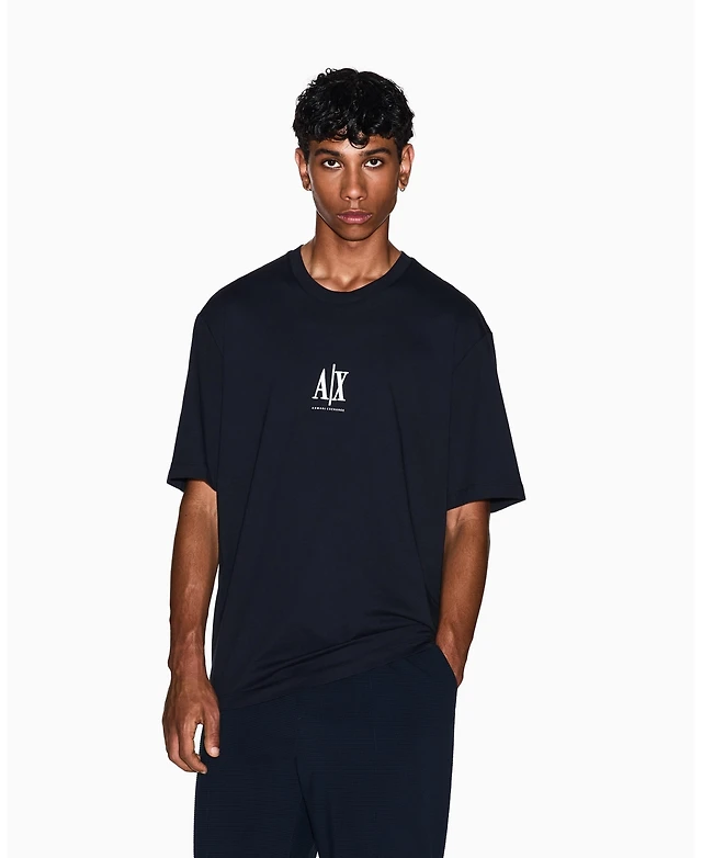 A|X Armani Exchange Men's Classic Fit Short Sleeve Stacked Logo Graphic T-Shirt