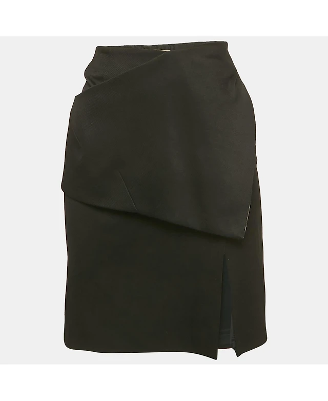 Pre-Owned Balenciaga Women's Black And Pink Gabardine Asymmetrical Overlap Pencil Skirt