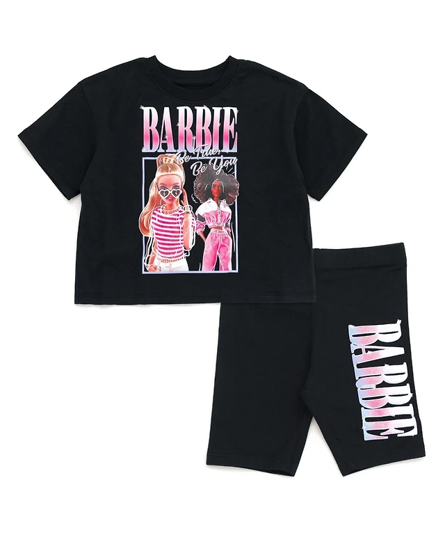 Barbie Girls Cropped Boxy T-Shirt and Bike Shorts Outfit Set