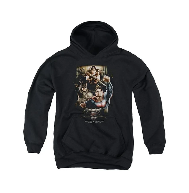 Batman V Superman Youth Three Action Pull Over Hoodie / Hooded Sweatshirt