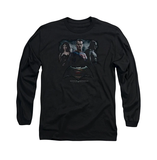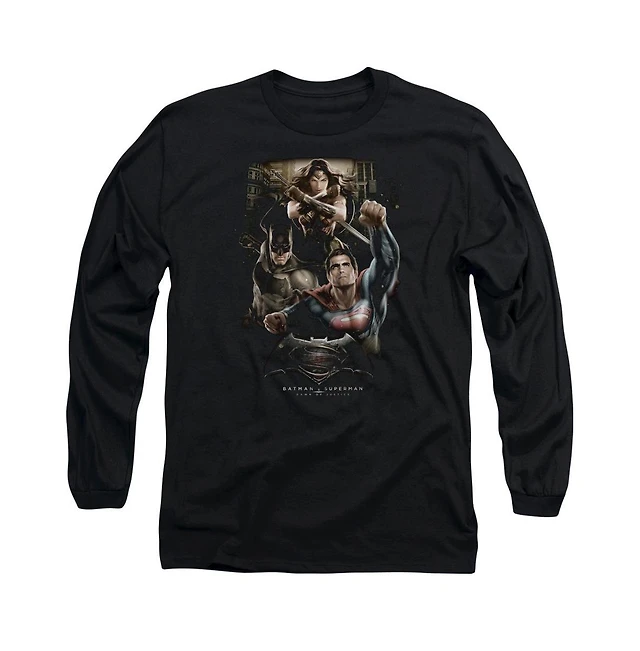Batman V Superman Men's Three Action Long Sleeve Adult Tee / T-Shirt