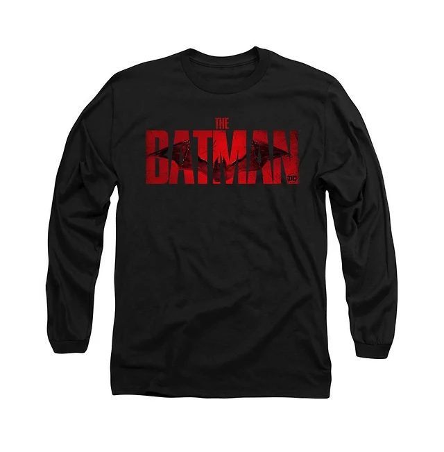Batman Men's The Logo With Red Bat Long Sleeve Adult Tee / T-Shirt