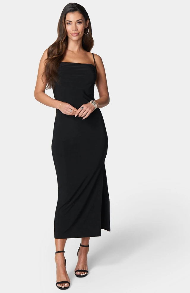 Bebe Women's High Neck Cowl Maci with Slit Dress