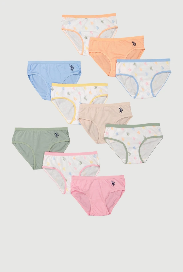 Girls Beverly Hills Polo Club Printed Pattern Underwear 10 Pack
