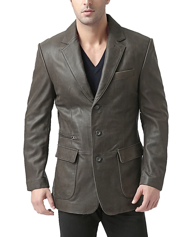 Bgsd Men Leroy Three Button Lambskin Leather Blazer