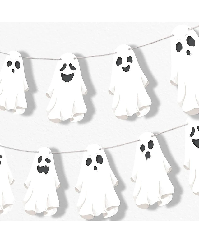 Big Dot of Happiness Spooky Ghost Garland Banner, 30 Feet of Cord, 15 Paper Ghost Shapes