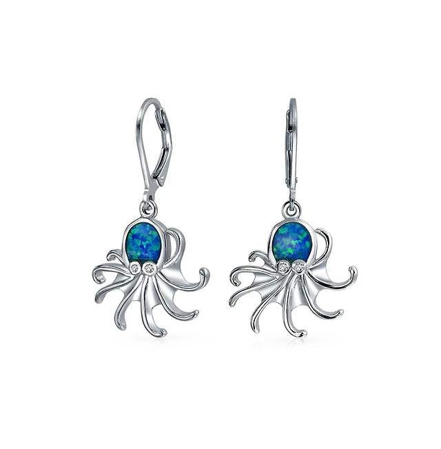 Bling Jewelry Nautical Synthetic Blue Opal Marine Life Lever back Octopus Dangle Earrings Sterling Silver