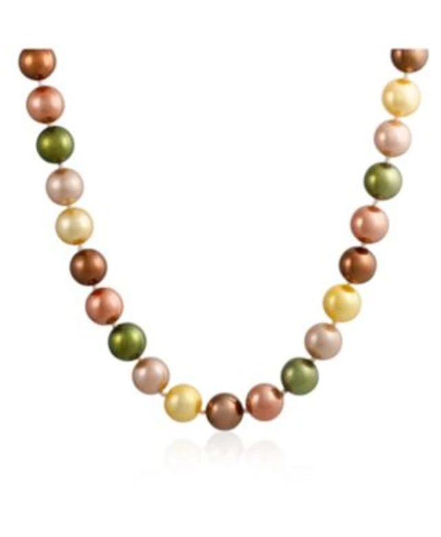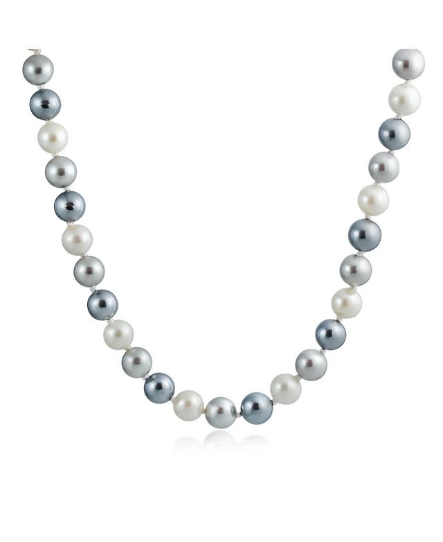 Bling Jewelry Hand Knotted Multi-Color Blue Grey Shell Imitation Pearl Strand Necklace 14MM