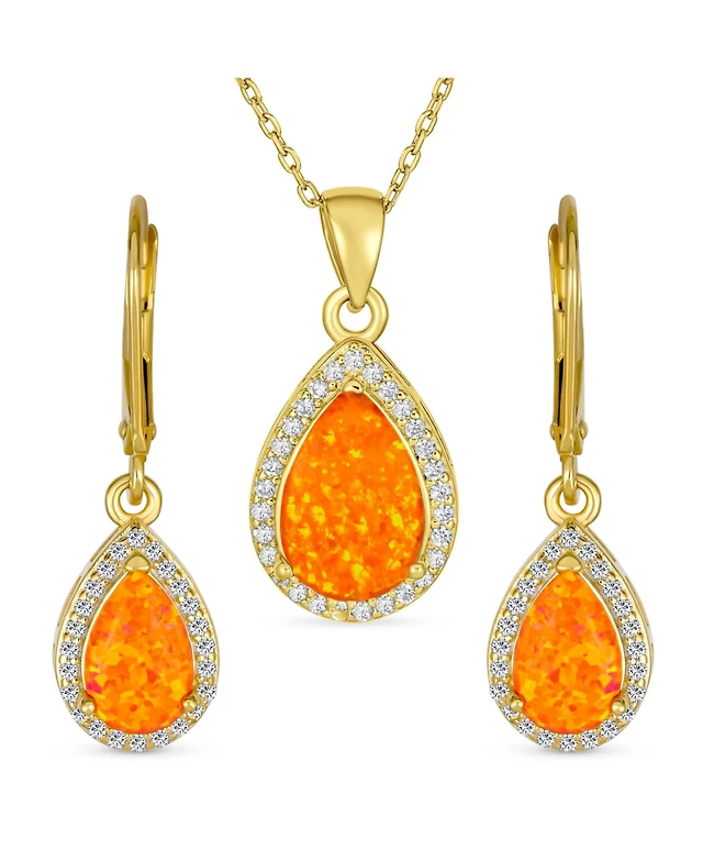 Bling Jewelry Cz Halo Solitaire Orange Opal Teardrop Pendant & Earrings Jewelry Set