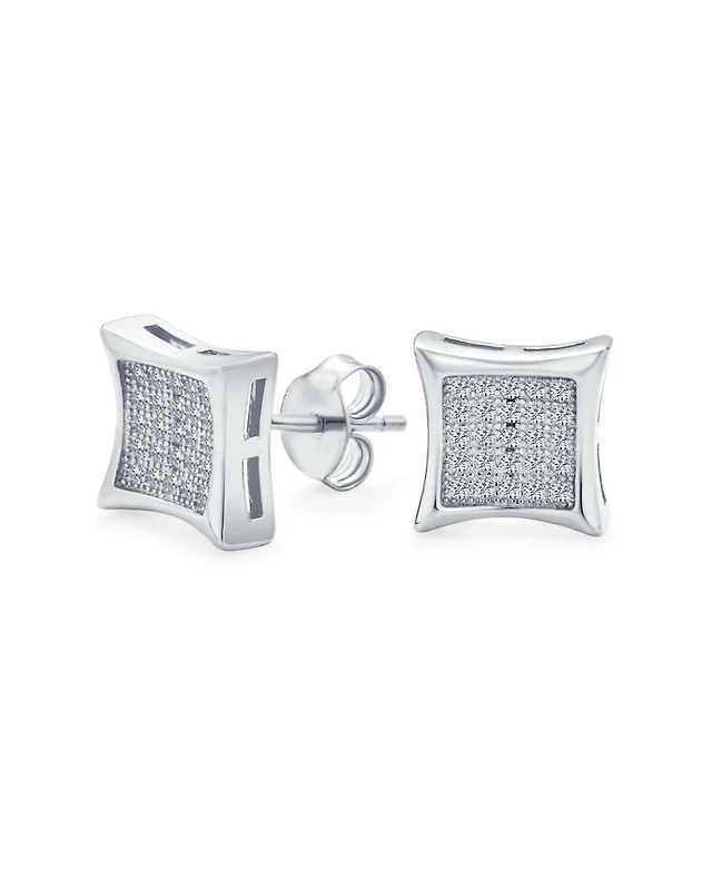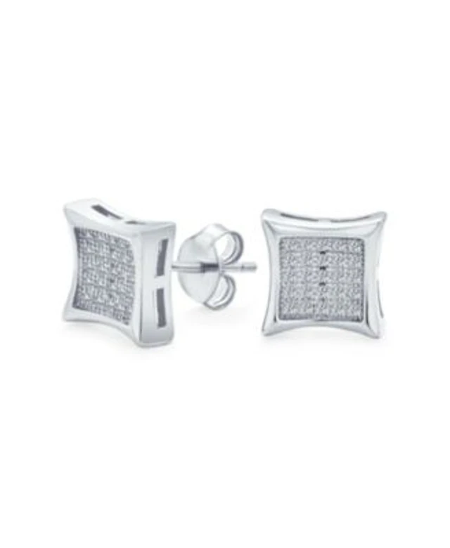 Bling Jewelry Black Square Kite Shaped Cz Micro Pave Cubic Zirconia Stud Earrings .925 Silver Screw back 7-12MM