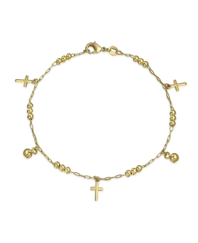 Bling Jewelry Christian Beads Bells Charm Cross Anklet Ankle Bracelet Gold Plated 10 Inch