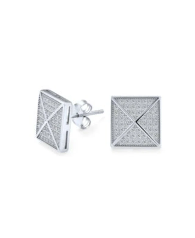 Bling Jewelry Geometric Mens Square Cubic Zirconia Pave Cz Pyramid Stud Earrings .925 Sterling Silver