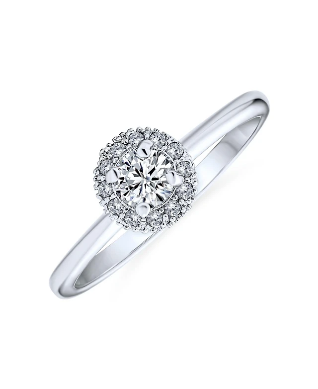 Bling Jewelry Classic Cubic Zirconia Cz Halo Round Solitaire Promise Ring Sterling Silver Thin 2MM Plain Band