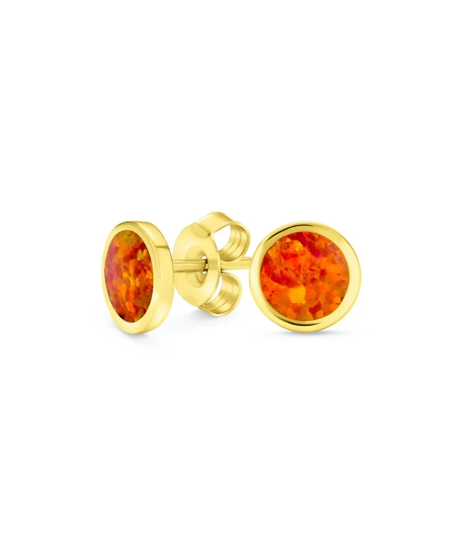 Bling Jewelry Classic Iridescence Bezel Setting Flat Round Circle Created Orange Fire Opal Stud Earrings Gold Plated .925 Sterling Silver Small 5MM