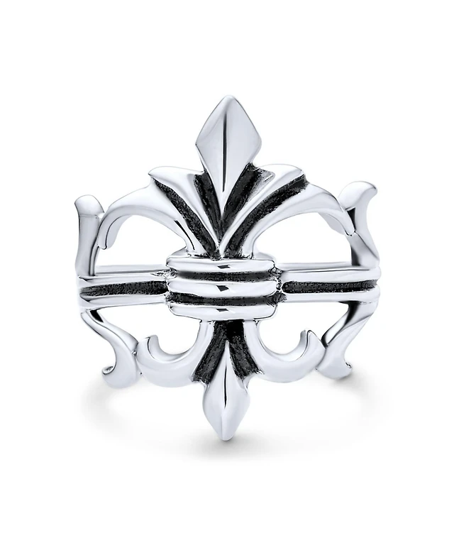 Bling Jewelry Set of 2 Fleur De Lis Cross Silver Black Huggie Hoop Earrings Stainless Steel