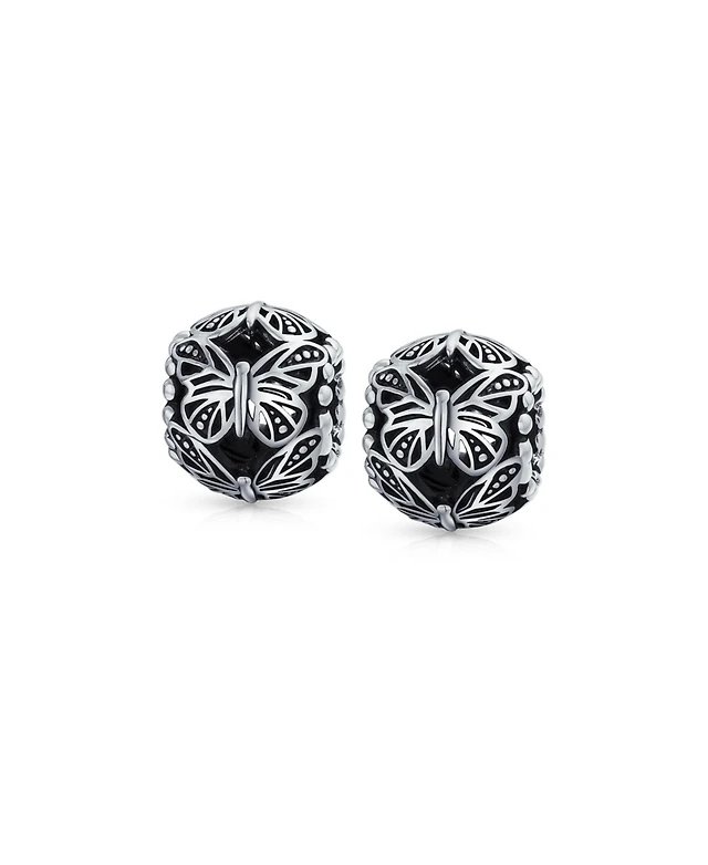 Bling Jewelry Set of 2 Oval Round Nautical Sea Turtle Charm Bead in Oxidized Sterling Silver
