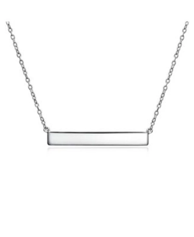 Bling Jewelry Horizontal Sideway Inspirational Flat Bar Name Plated Pendant Necklace .925 Sterling Silver Crystal Accent