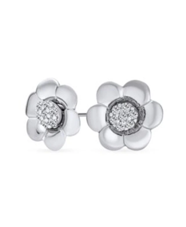 Bling Jewelry Set of 2 Heart Petals Flower Cz Clip-On Earrings Silver Gold Plated