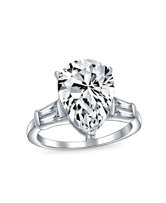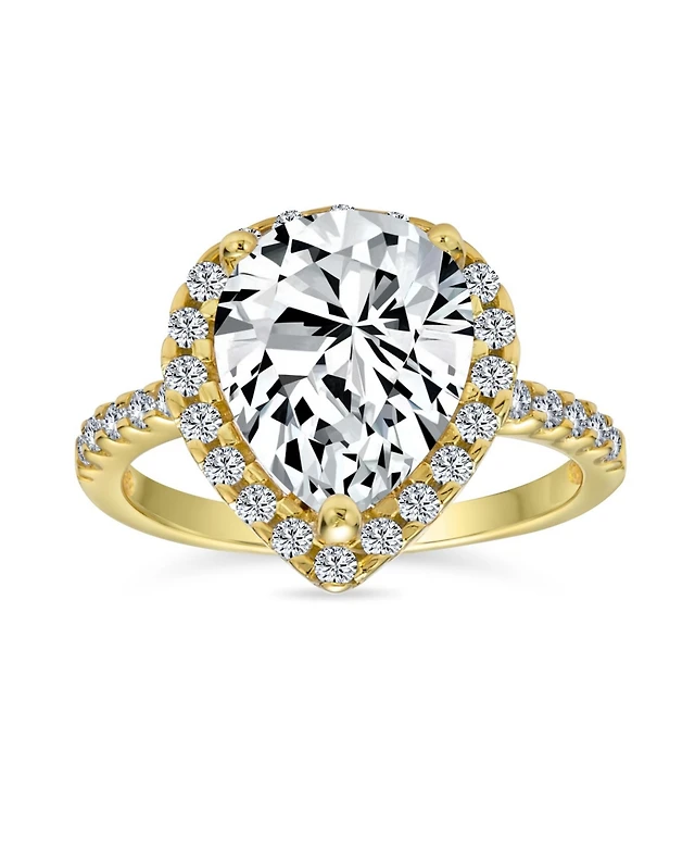 Bling Jewelry 7CT Pear Halo Cz Solitaire Teardrop Cocktail Statement Ring Sterling Silver
