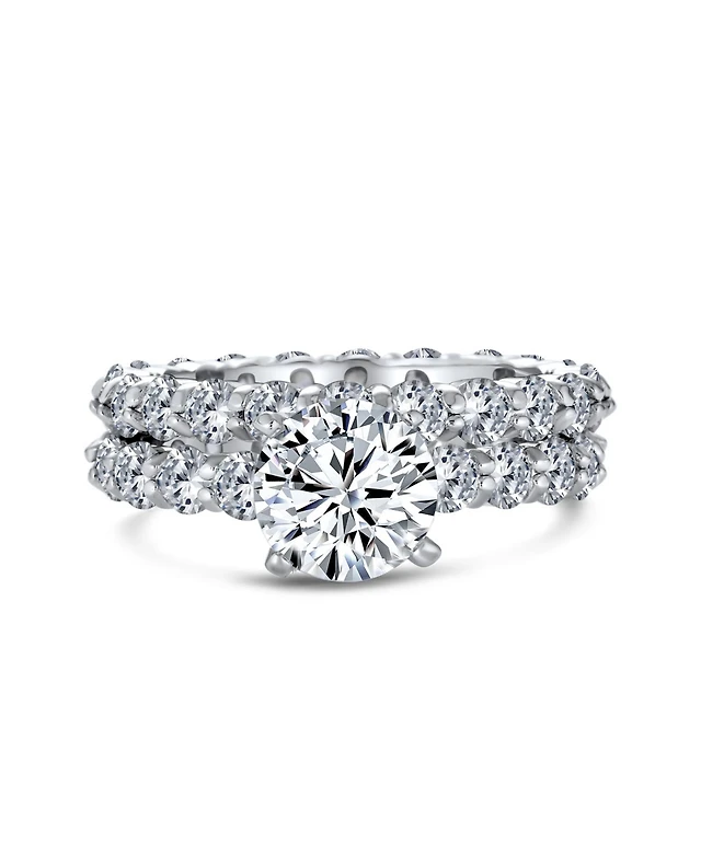 Bling Jewelry Sterling Silver 3CT Round Cz Solitaire & Cubic Zirconia Pave Eternity Band Ring Set – 6-Prong Design