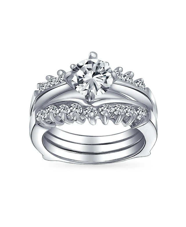 Bling Jewelry Classic Sterling Silver 2CT Round Cz Solitaire & Channel-Set Band Ring Set