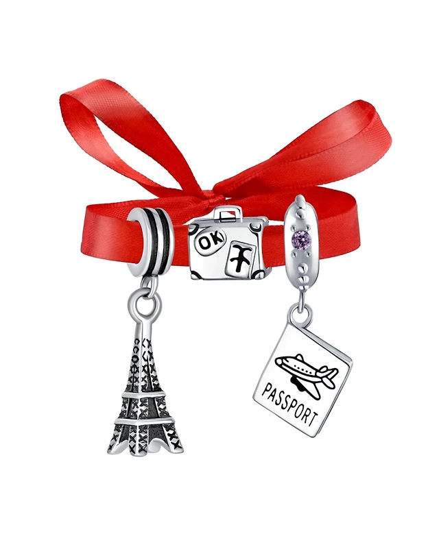 Bling Jewelry Three Multi Dangling Hearts Charms Anklet Ankle Figaro Bracelet Sterling Silver Adjustable 9 To 10 Inch With Extender