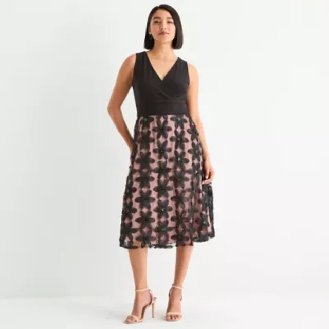 Brianna Milay Womens Sleeveless Applique Embroidered Floral Fit + Flare Dress