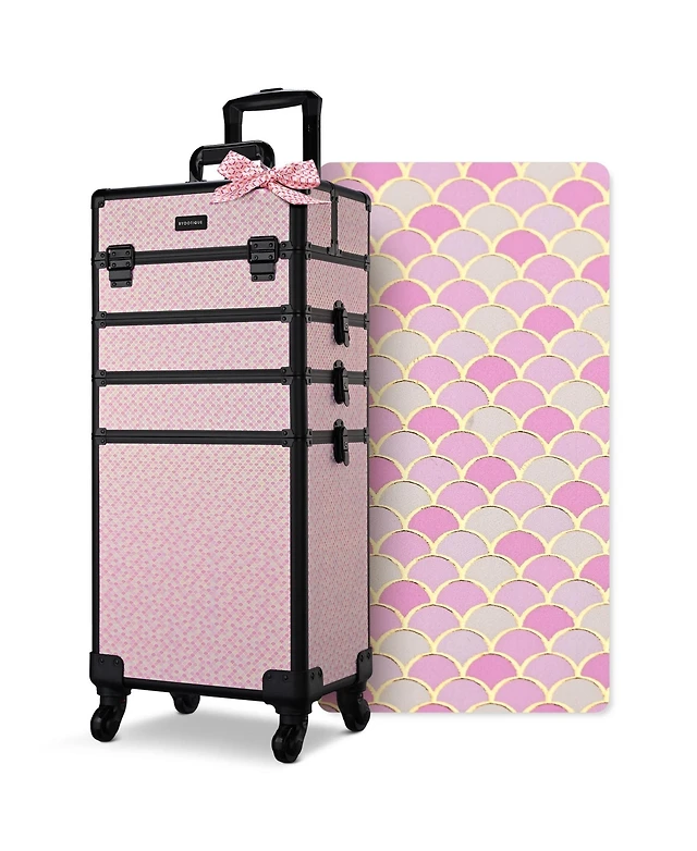 Byootique Mermaid Pink 4in1 Rolling Makeup Train Case Cosmetic Organizer Wheel