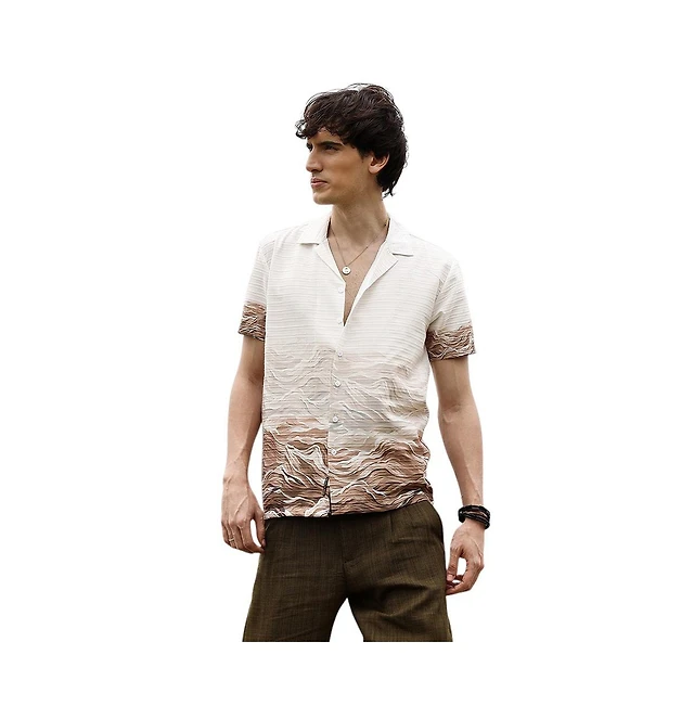 Campus Sutra Men's Beige Ripple Box Shirt