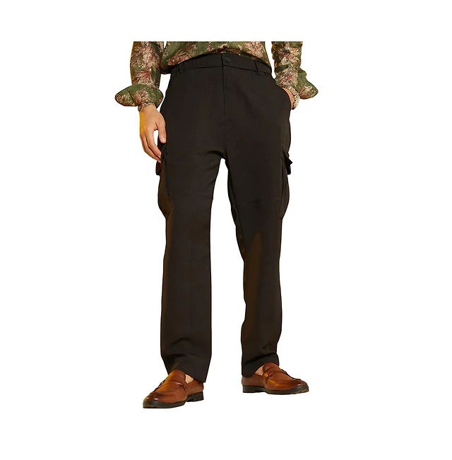 Campus Sutra Men's Midnight Black Straight-Fit Cargo Trousers