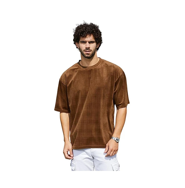 Campus Sutra Men's Chocolate Brown Tartan-Plaid Oversized T-Shirt