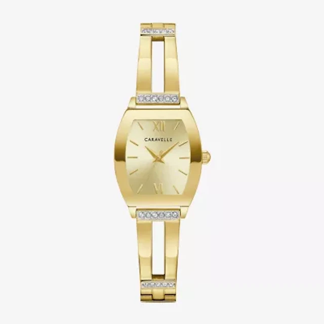 Caravelle Designed By Bulova Womens Crystal Accent Gold Tone Stainless Steel Bangle Watch 44l226