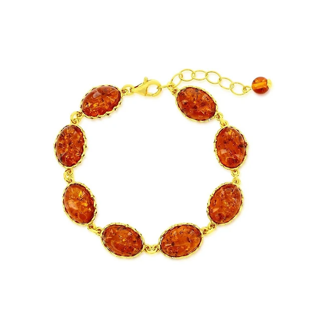 Caribbean Treasures Sterling Silver, Oval Amber Link Bracelet - Gold Plated