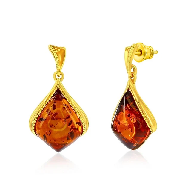 Caribbean Treasures Sterling Silver, Amber Marquise Dangle Earrings - Gold Plated