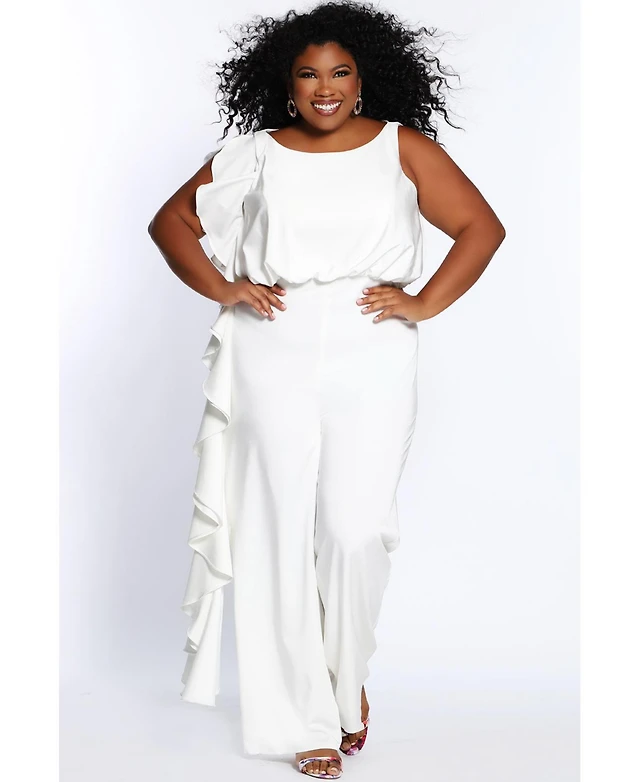 Celebrations by Sydney's Closet Women's Crepe Ruffle Jumpsuit