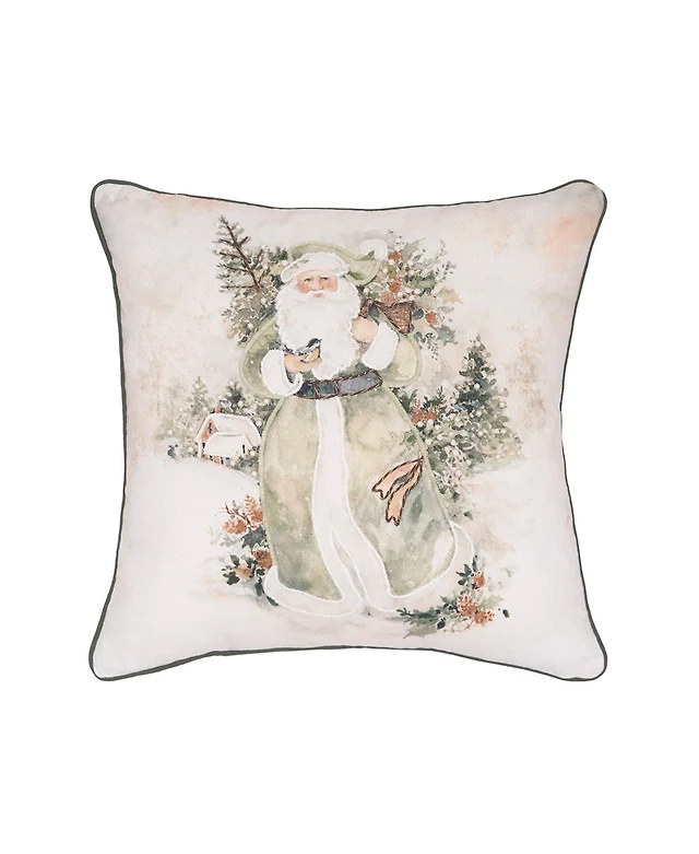 Vintage Woodland Snow Santa Claus Christmas Accent Throw Pillow 18" x 18"