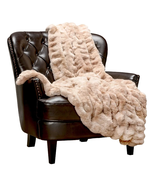 Chanasya Premium Ruched Faux Fur Throw Blanket - Luxurious