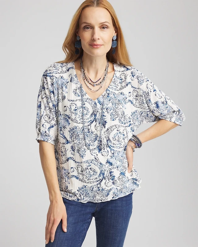 Bubble Hem Pleated Cotton Top