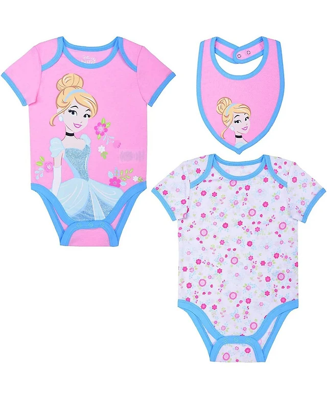 Baby Boys and Girls Pink, White Cinderella 3-Piece Bodysuit Bib Set