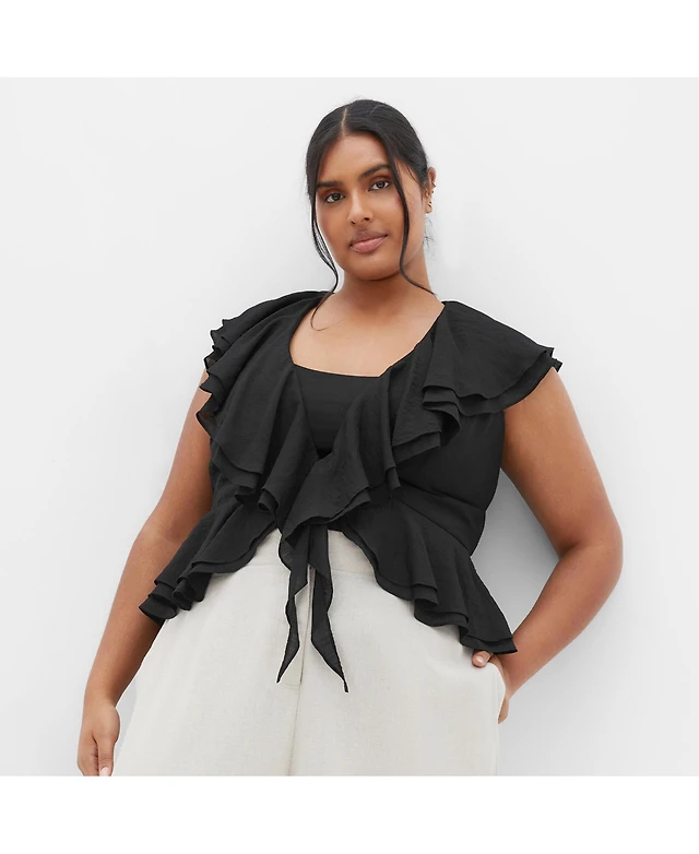 City Chic Women's Demure Off Shoulder Frill Jumpsuit