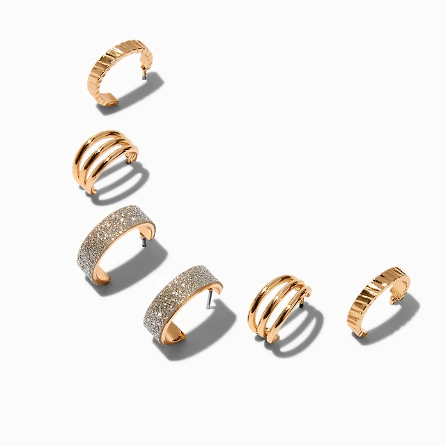 Gold-tone Glitter Hoop Earring Stackables Set - 3 Pack