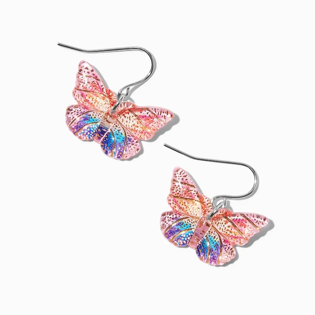 Silver-tone Pink Butterfly Beaded Dangle Hair Claw