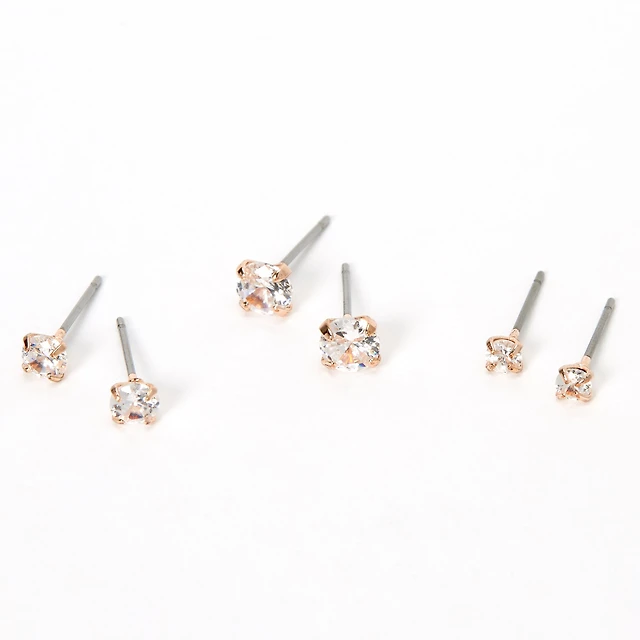 C LUXE by Claire's 18kt Rose Gold Plated Cubic Zirconia 3mm, 4mm, 5mm Round Stud Earrings - 3 Pack