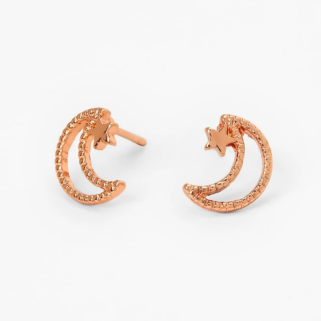 18K Rose Gold Plated Cutout Moon & Star Stud Earrings