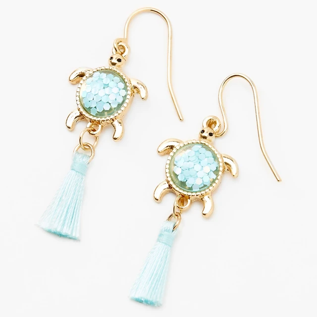 Turquoise Turtle Tassel 1.5" Drop Earrings