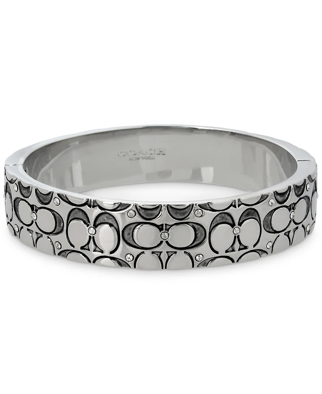 Coach Silver-Tone Crystal Quilted C Bangle Bracelet