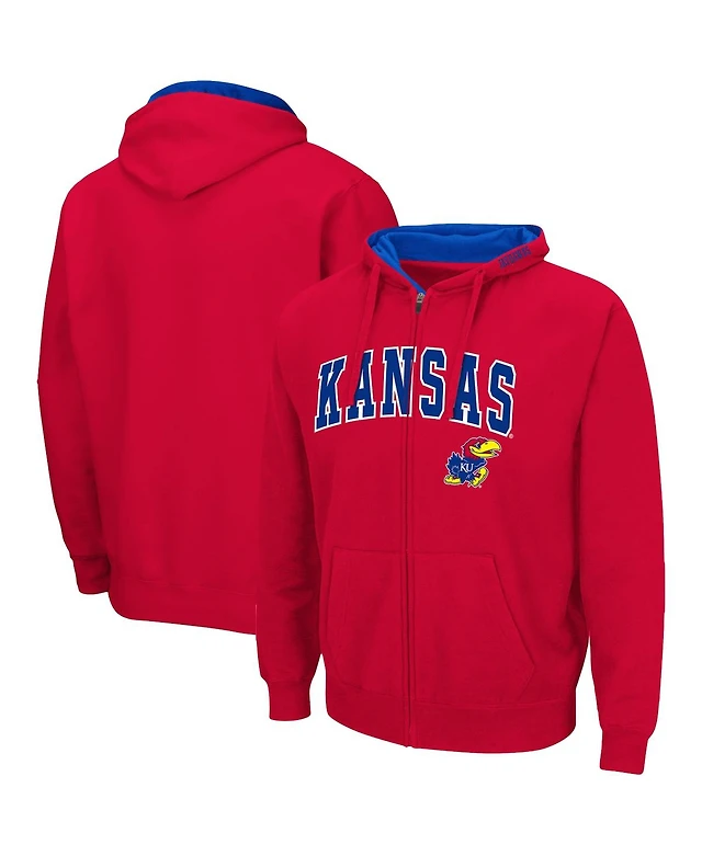 Men's Colosseum Red Kansas Jayhawks Arch and Logo 3.0 Full-Zip Hoodie