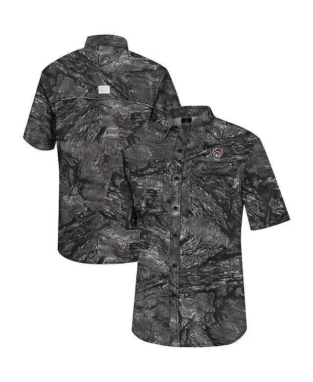 Colosseum Men's Charcoal Nc State Wolfpack Realtree Aspect Charter Full-Button Fishing Shirt