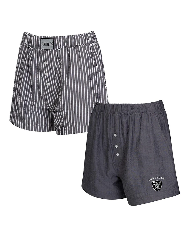 Concepts Sport Women's 2-Pack Charcoal Las Vegas Raiders Stripes and Solids Boxer Shorts Set